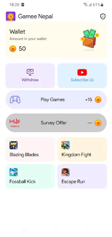 Gamee Nepal is your go-to gaming platform for endless entertainment and rewards. Play a variety of engaging games, accumulate coins as you conquer levels, and then turn those hard-earned coins into exciting rewards. Whether you're a casual gamer looking for fun or a competitive player seeking to win big, Gamee Nepal has something for everyone. Explore our vast library of games, challenge your skills, and unlock a world of possibilities. With seamless integration with popular payment gateways like Khalti, eSewa, and Payeer, redeeming your rewards has never been easier. Start gaming today and elevate your leisure time to a whole new level.