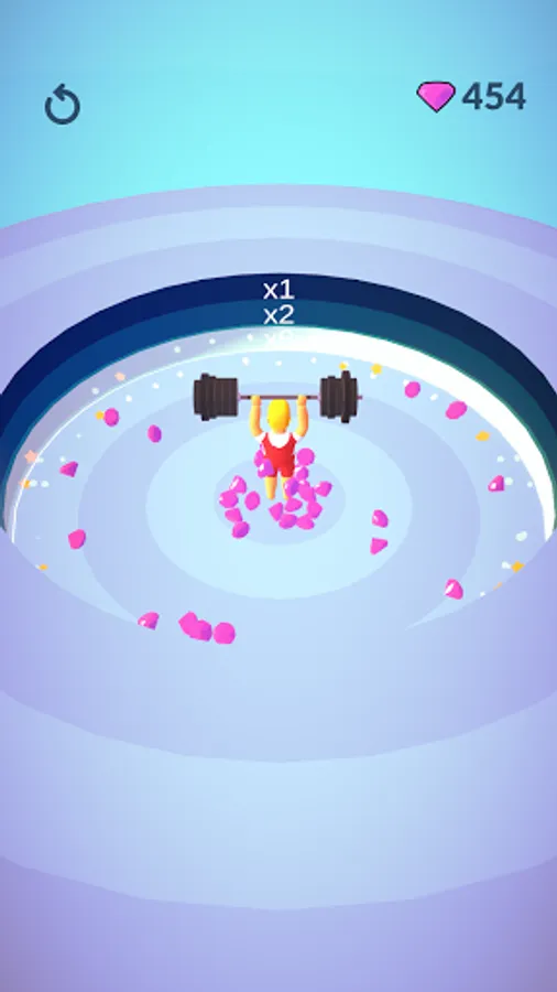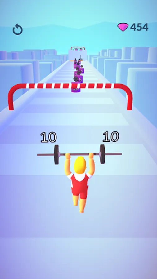 Pick up weight plates evenly. Avoid obstacles. Care all the weight to the end get gems.