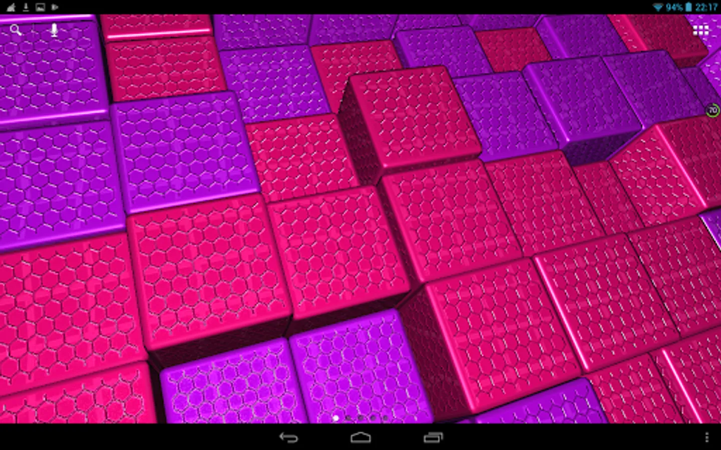 Cube 3D Live Wallpaper allows you to watch and play with animated cubes. You can just watch cubes fluctuations in this live wallpaper. But if you click on one of cubes you will see feedback. Cube color will change and it bounce down and up. Abstract simple picture with animated cubes decorates homescreen of your device a realistic 3d depth effect