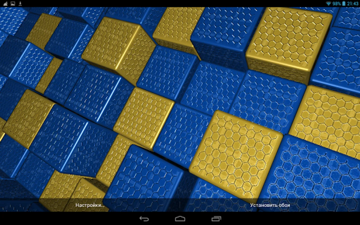 In Cube 3D Live Wallpaper you can change visual settings like color of cubes and also change cube behavior, height of fluctuations or speed of rotation of cubes platform. Modify colors of cubes and try beautiful combinations of colors - red and black, yellow and brown, orange and green - find you own combination.