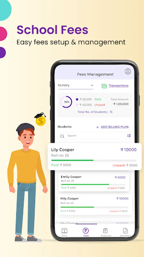 Manage student's fees status and give timely notifications to the parents about upcoming due dates.