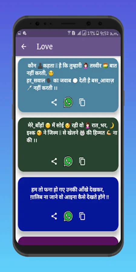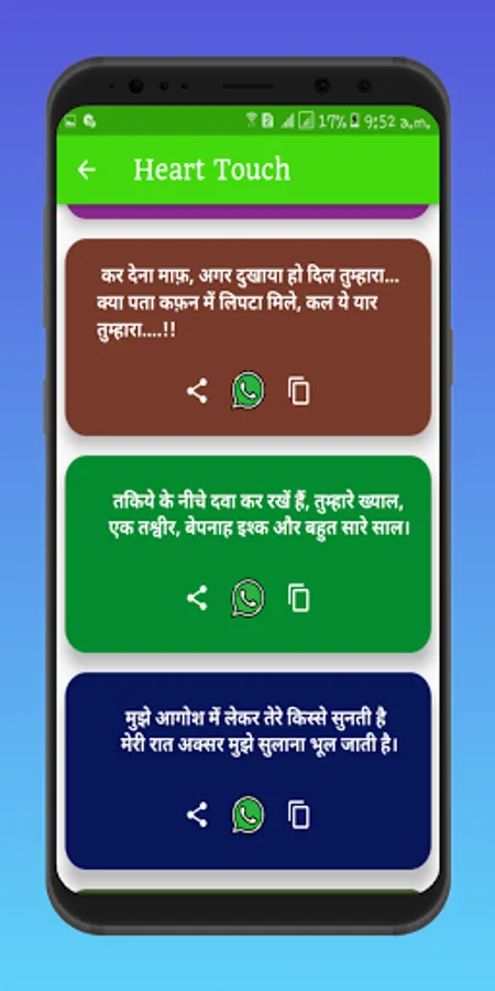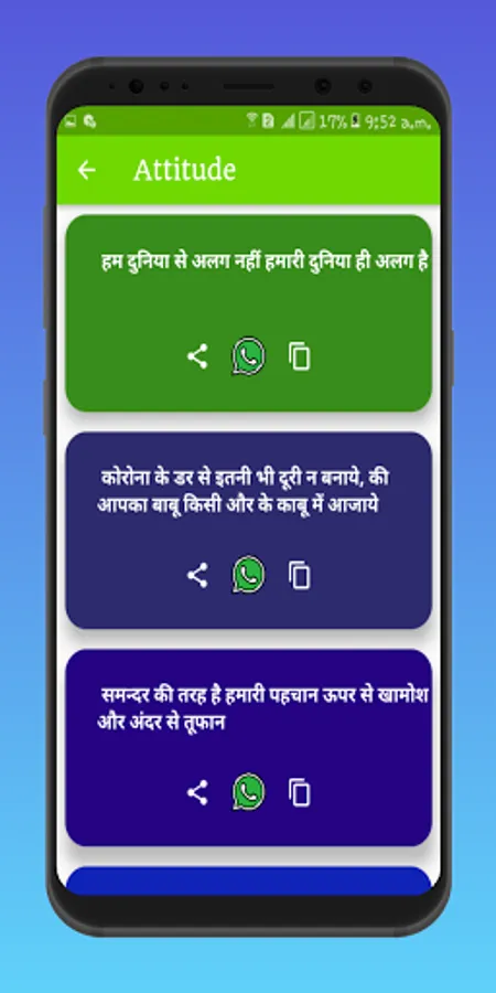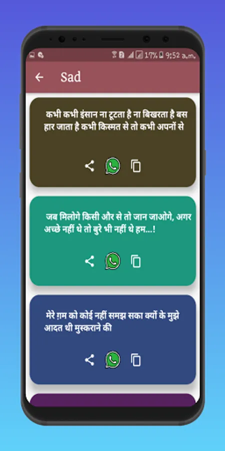 Very easy to use interface just scroll down to read the best status,Status and easily set that as your WhatsApp status or FB status.