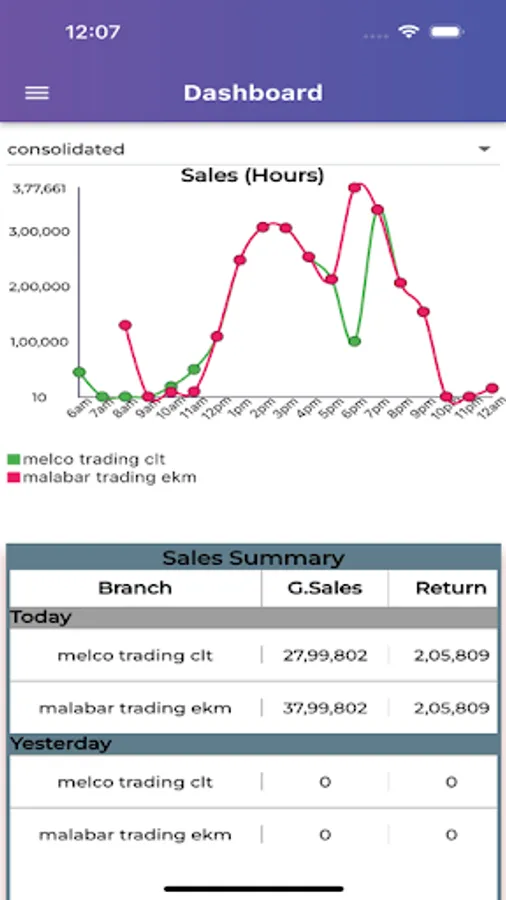 Sales Details of each branch from morning to night
