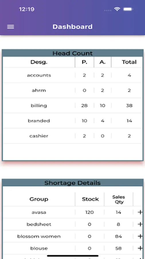 Shortage of stock of each inventory