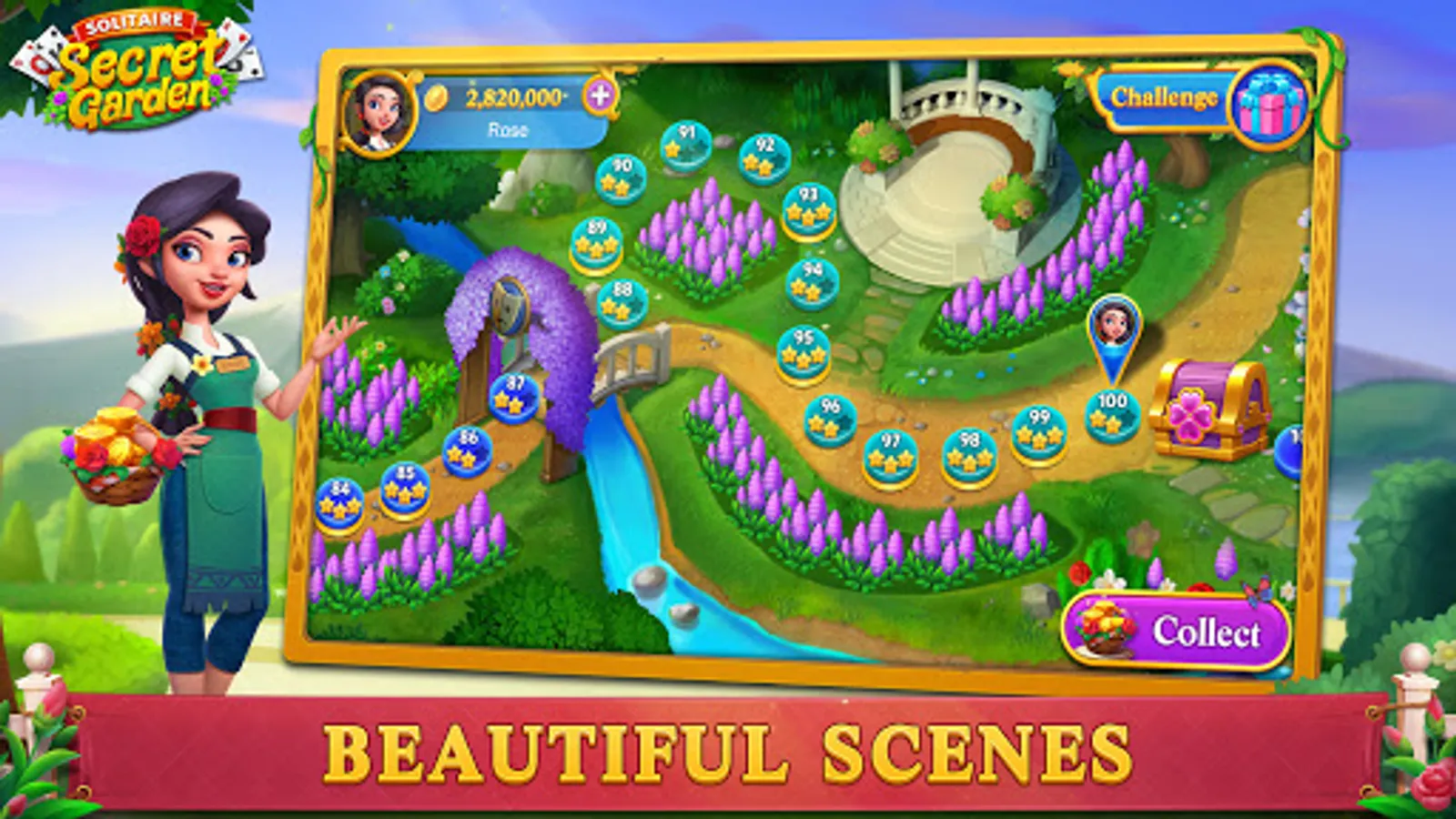 Come and experience creative gameplay based on classic solitaire Tripeaks game in Solitaire - Secret Garden!