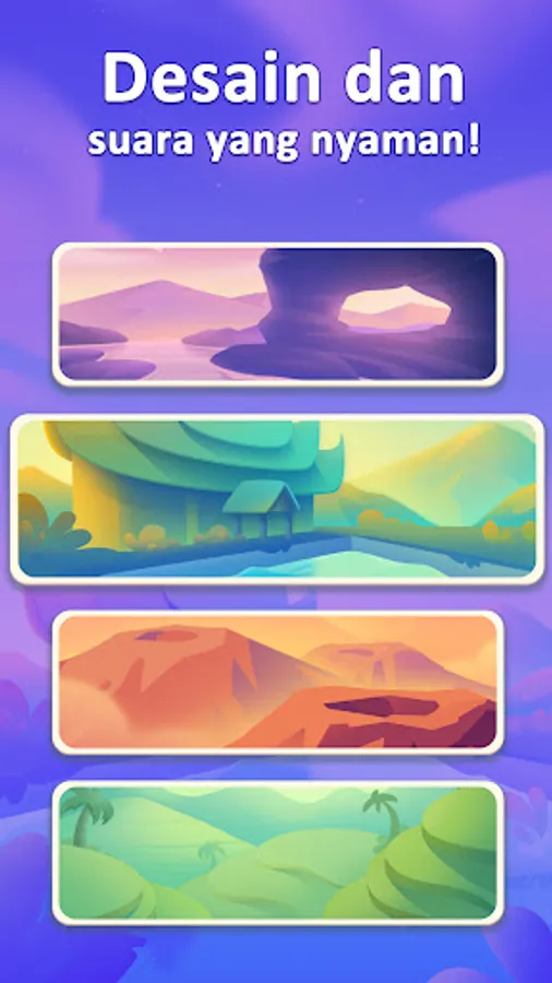 SUSUN KATA is a free modern crossword puzzle game. This game is easy to play and brain challenging at the same time. Immerse yourself into the beautiful scenery backgrounds to relax your mind.