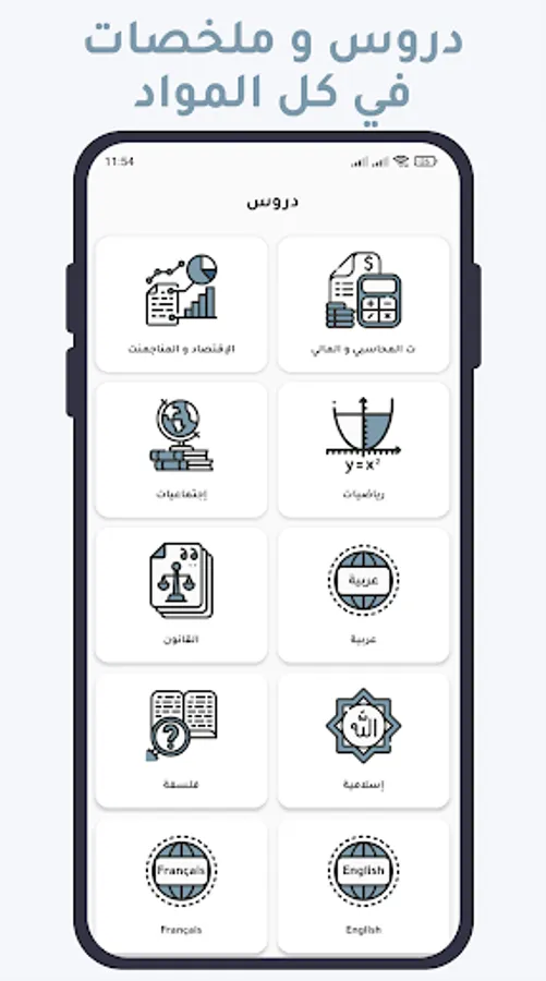 - All lessons in the basic subjects, in addition to the lesson book in English and French.