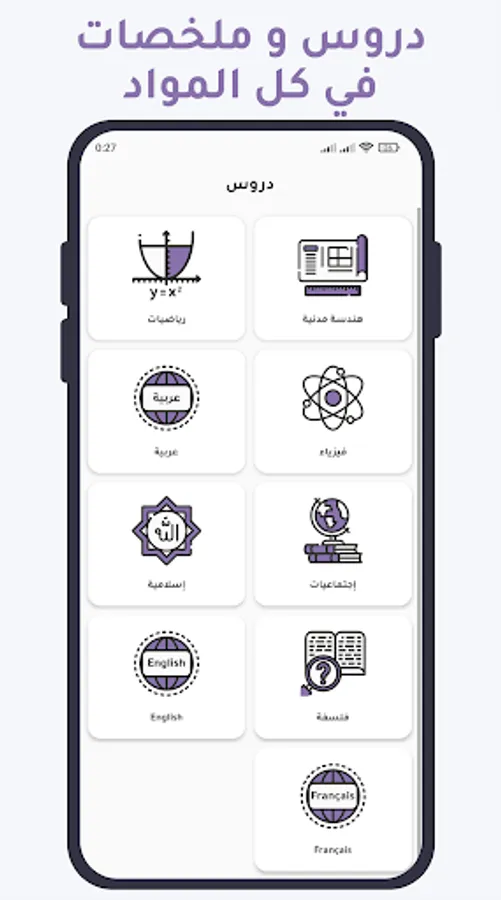 - All lessons in the basic subjects, in addition to the lesson book in English and French.