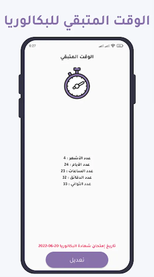 - The remaining time for the baccalaureate certificate with the possibility of amending the exam date.