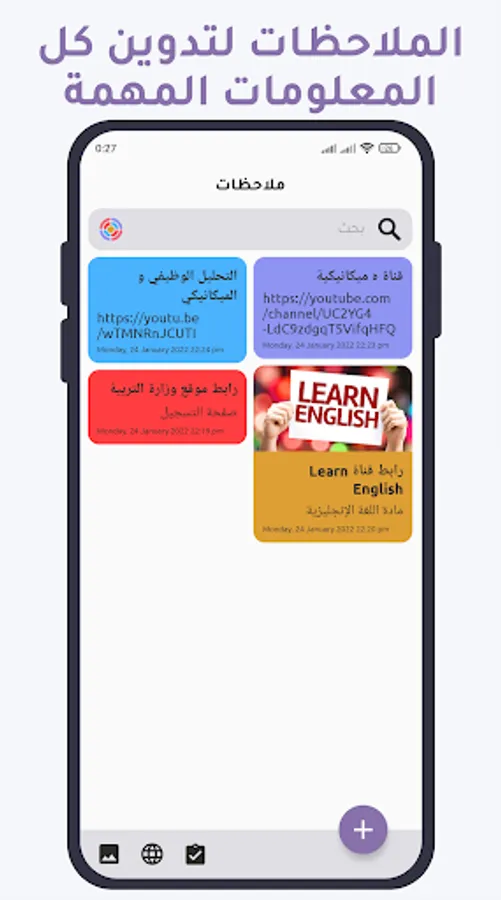 - Notes to jot down all the important information, websites, YouTube channels with the ability to add an image for each note.