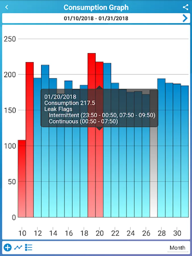 Neptune makes it easy for your utility to optimize workforce and operational efficiency. Running on any common phone or tablet, Neptune 360 Mobile™ enables your field techs to collect detailed data logging information when needed during on-site customer visits. They can immediately generate graphs of a customer’s water usage patterns to show exactly when they used more water than usual or when a probable continuous leak began somewhere in their house. The graphs also provide all E-Coder® alerts to further aid in troubleshooting usage anomalies. Our Neptune 360 Mobile™ app is easy to install and use, and immediately puts AMI functionality literally in the palm of your hand – including 96 days of hourly interval data as well as flags for leaks, tamper, and reverse flow straight from the meter.