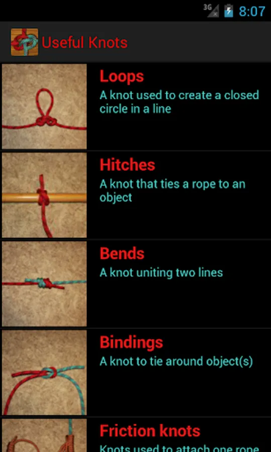 There are hundreds or even thousands of knots out there and each has its specific uses. But in everyday situation average person has no time to learn them or look through all of them and pick the best one. Useful Knots offer a selected list of the best knots for most practical situations.