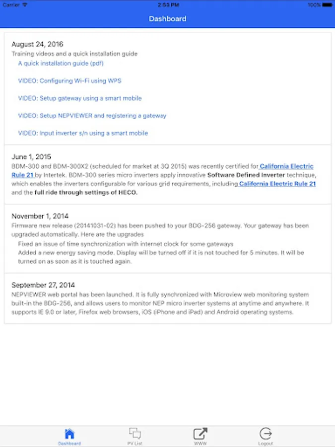 NEPViewer provides real-time monitoring for BDM micro inverter systems from Northern Electric & Power Inc. (NEP)