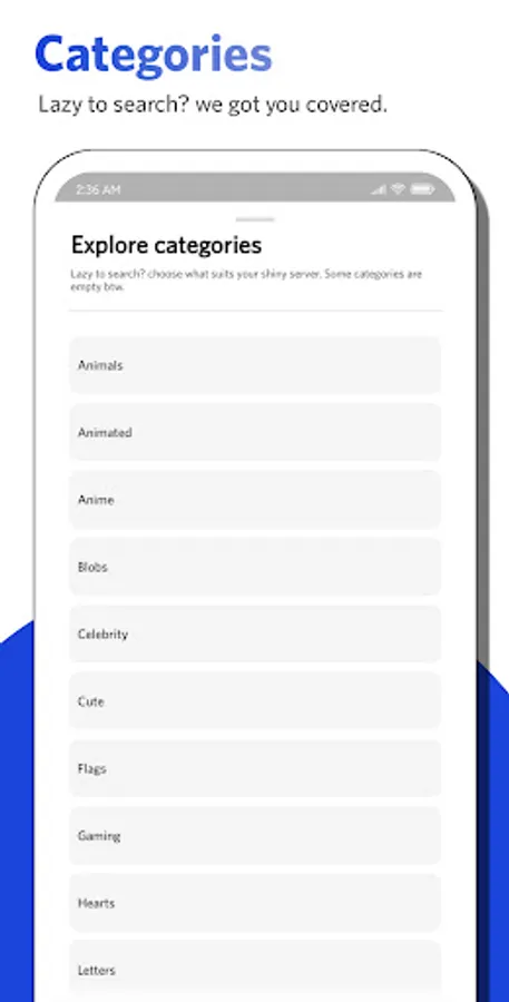Yes, I know. We all don't like to scroll through emojis we don't like. That's why we also provide categories to choose what suits your shiny-server.