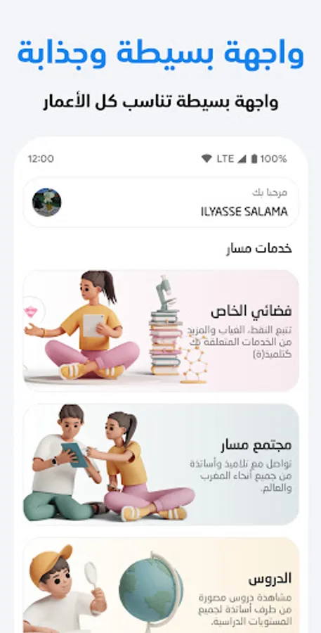 أكبر منصة تفاعلية بالمغرب تجمع جميع تلاميذ وأساتذة وأولياء الأمور في تطبيق واحد يقدم خدمات عديدة لجميع المستخدمين بطريقة جديدة وواجهة جذابة وبسيطة لمساعدتك على الوصول إلى ما تحتاج في لمح البصر.