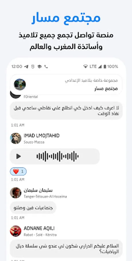 أكبر منصة تواصل بالمغرب تربط بينك وبين جميع التلاميذ وأوليائهم والأساتذة كذلك بالمغرب.