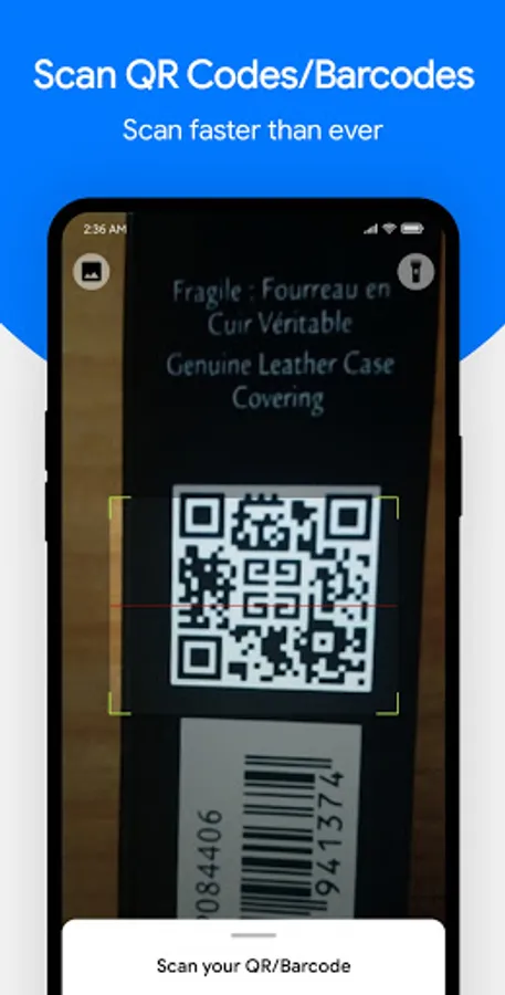 Lightweight QR code and barcode scanner with many more supported barcode formats.