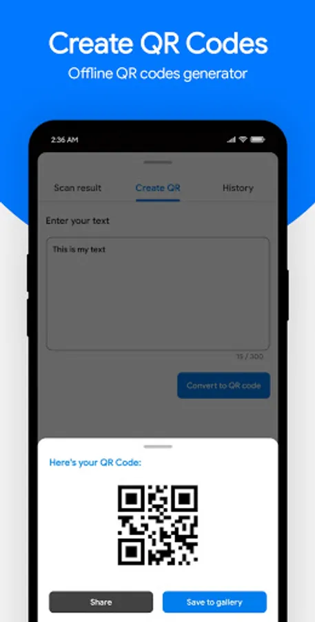 Offline, yes!! You can create QR codes offline and save them to your gallery.