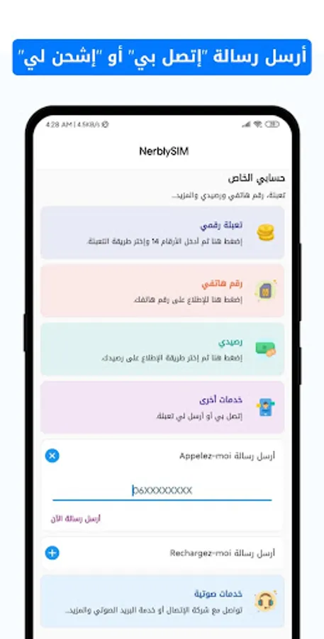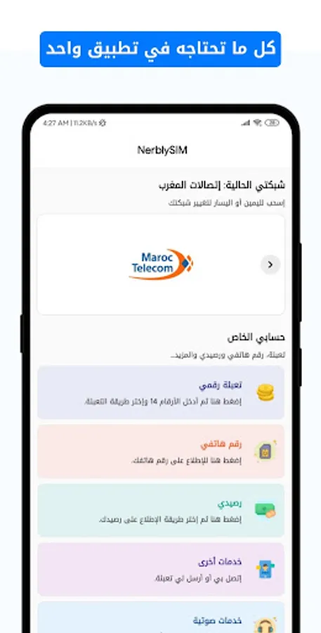 This application will make many things easier for you, such as filling your account or verifying your phone number for any mobile provider in Morocco such as Maroc Telecom, INWI, Orange. Many more features are coming soon.