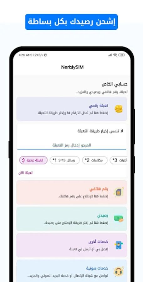 By using NerblySIM, you can check your account balance, recharge your account, check your phone number, send free SMS messages, and more.