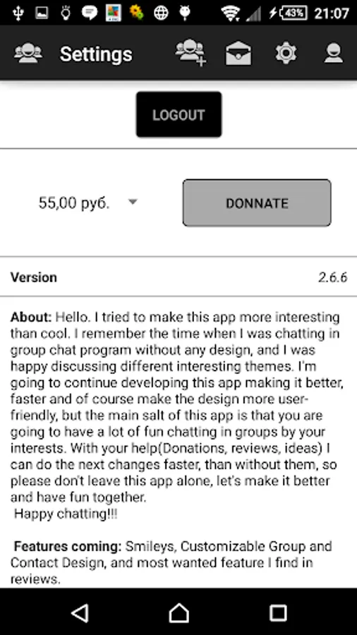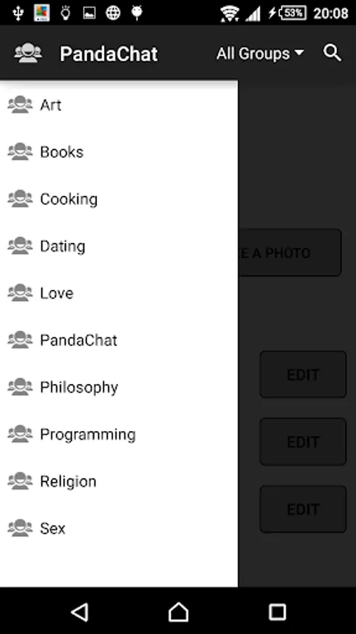 Pandachat is Old Style Group Chat separated by interests. It is cool to chat about things that most interest you. Main salt of this app is that you are going to have a lot of fun chatting in groups by your interests and find friends only through groups.