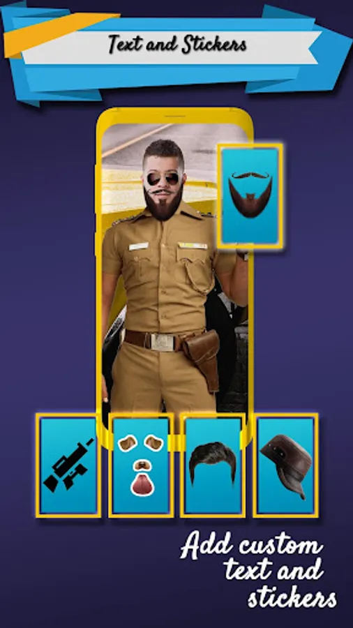 To make your transformation more convincing, the Police Photo Editor app provides a range of stickers and props that can be placed on your photo.