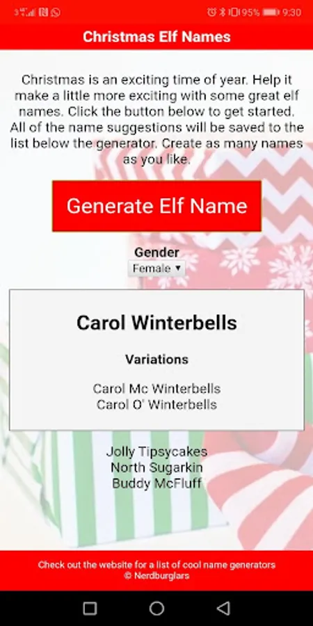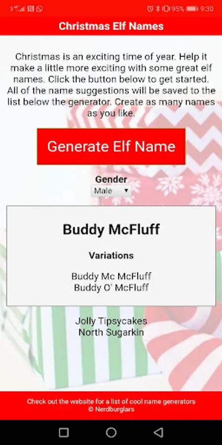 The app will allow you to come up with names for male and female Christmas elfs that will be perfect for bringing the little character to life.