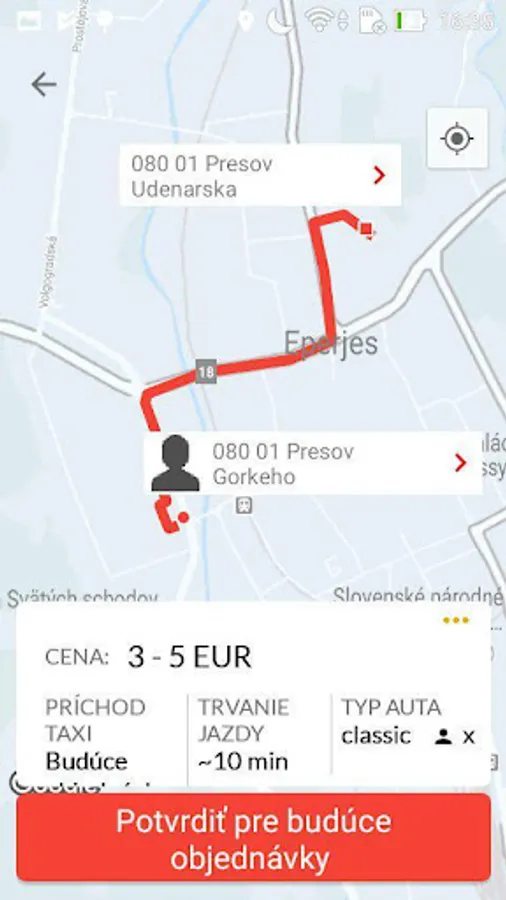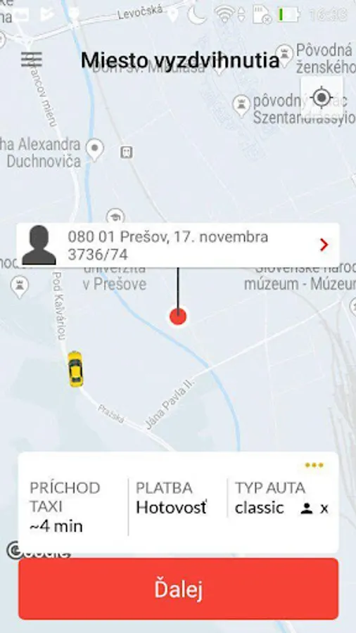 - Pasažier dostane Upozornenie 3 minúty pred príchodom taxíku the hneď aj na po príchode miesto