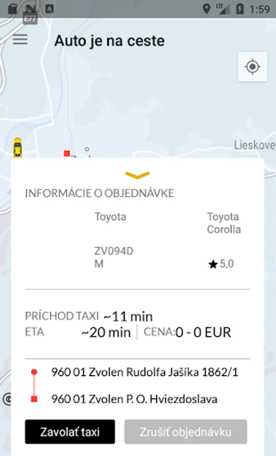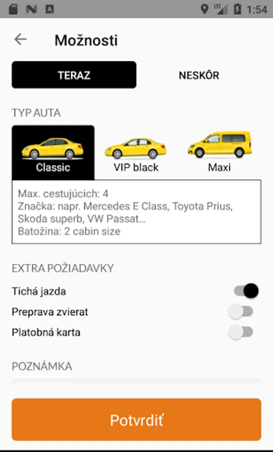 Nevadí, ak na ulici čaká viac taxíkov, lebo hneď dostanes ŠPZ, farbu a typ tvojho taxíku, takže jeho identifikacia bude hračkou!