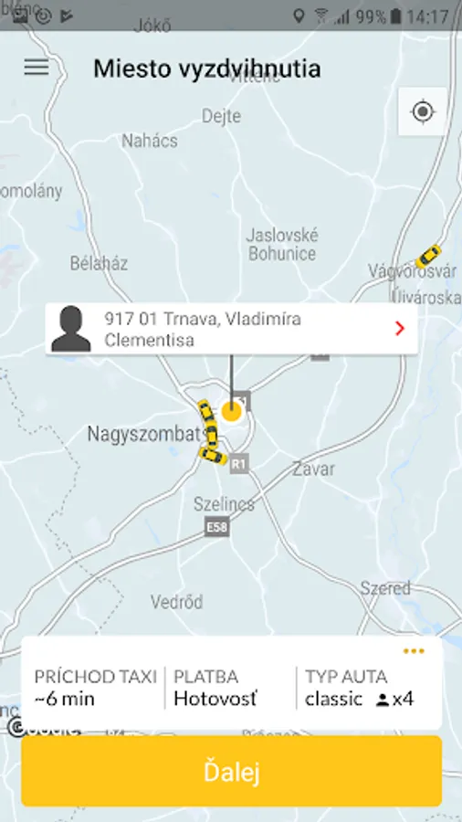 Stačí iba jeden Doty najbližší the taxi už bude na ceste.