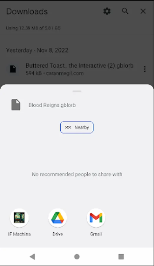 Through sharing by long pressing on links inside your browser or files located in a file viewer, you can import those files into the application. IF Machina allows you to organize and play imported interactive fictions of said format!