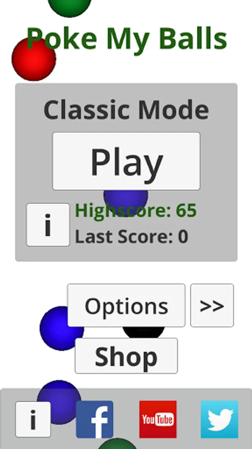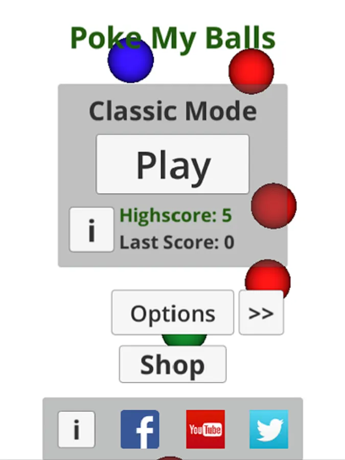 Poke my Balls is a fun, simple, and addicting game, for the time when you have a couple of minutes to take you mind off of life. If you can tap your screen you can play Poke My Balls! Colored balls drop from the top of the screen, tap all of the right color. Black balls, Blue balls, Green balls, and Red balls too, They all drop into view. If you prefer blue, then tap the blue. Compete with your friends for the highest score. More balls drop the longer you play. Now get out there and poke some balls.