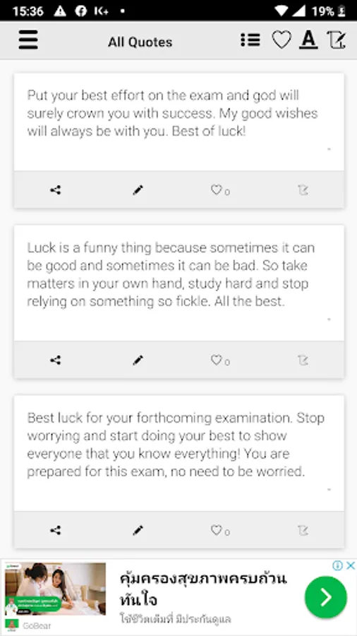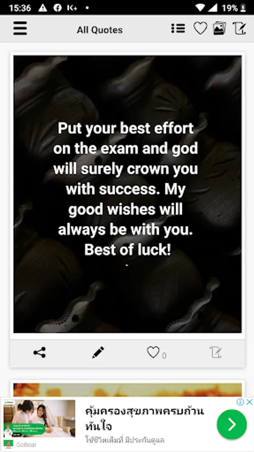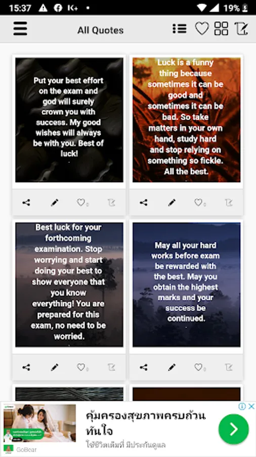 - You can switch between 2 views (image quote view and text quote view) easily.