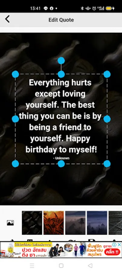 - You can edit your image quotes as you want (change font, background image, text size, etc.)