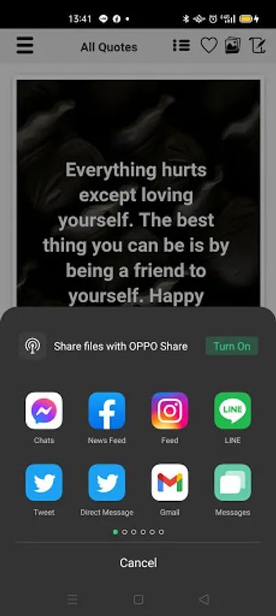 - You can switch between 2 views (image quote view and text quote view) easily.