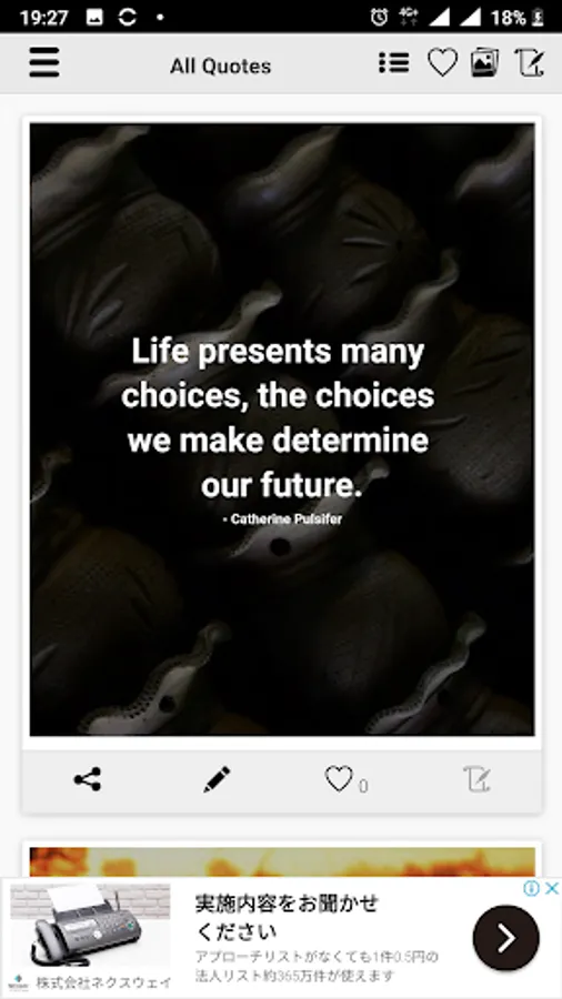 - You can switch between 2 views (image quote view and text quote view) easily.