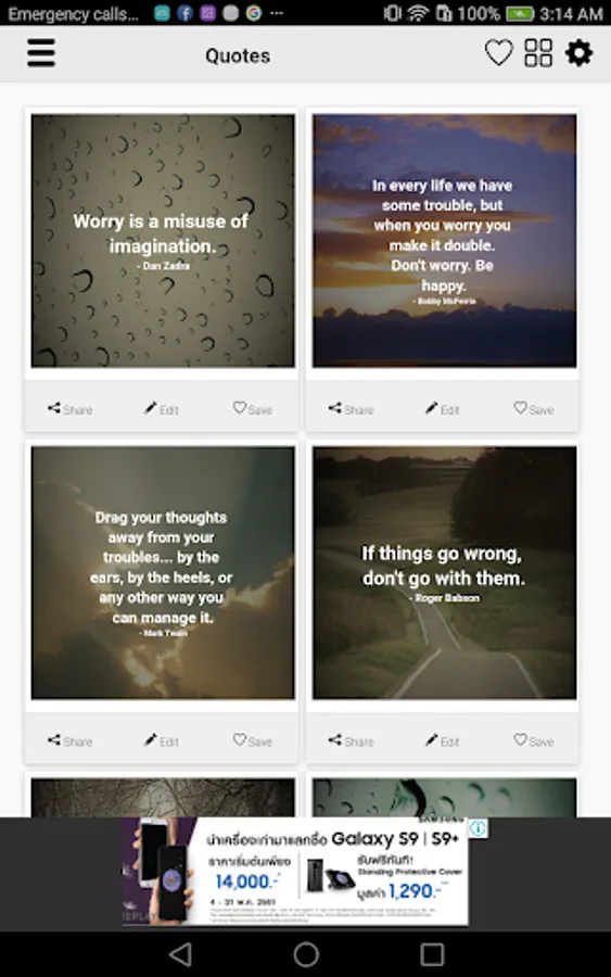- You can switch between 3 views (image quote view, text quote view & grid view) easily.