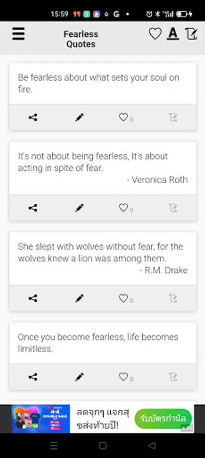 This is an App that stores many fearless quotes. I will continue adding new quotes timely. There are many fearless quotes that you can learn and share to anyone.