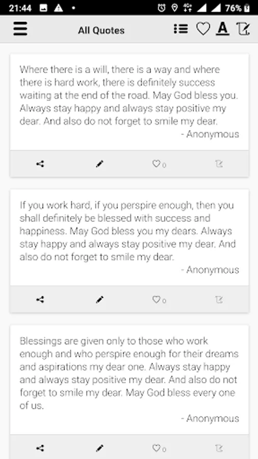This is an App that stores many great quotes about blessing. I will continue adding new quotes timely. There are many God Bless You Quotes that you can send to your friends.