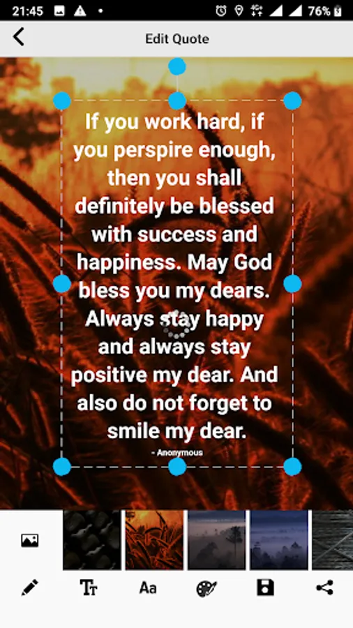 - You can edit your image quotes as you want (change font, background image, text size, etc.)