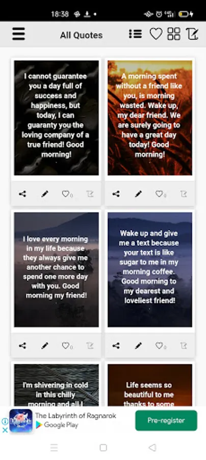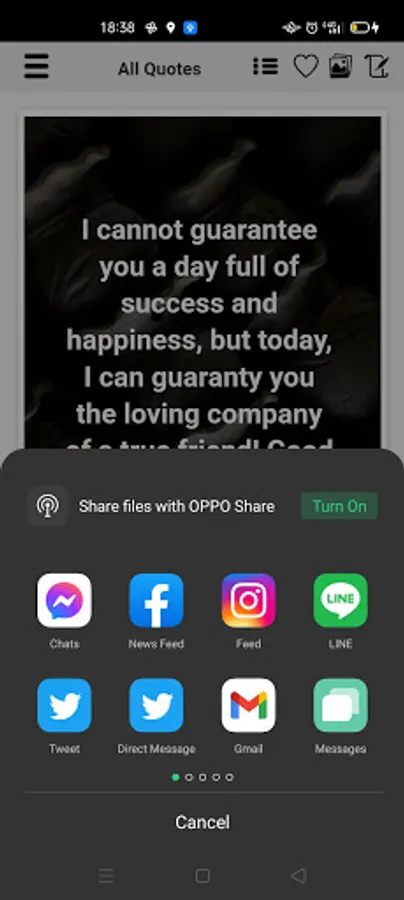 - You can switch between 2 views (image quote view and text quote view) easily.