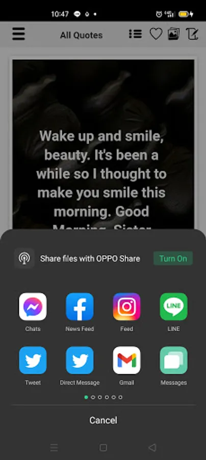 - You can switch between 2 views (image quote view and text quote view) easily.