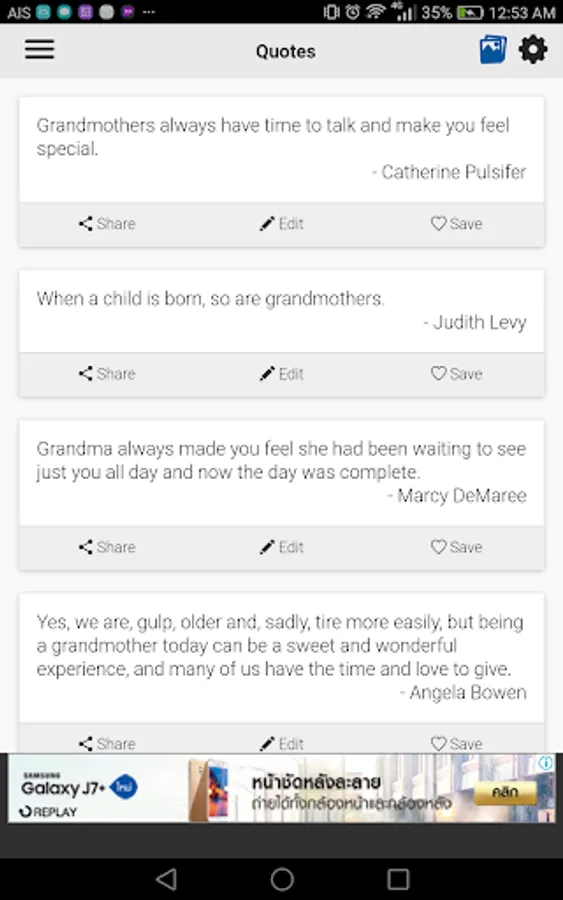 This is an App that stores many great quotes about grandma. I will continue adding new quotes timely. There are many Grandma Quotes that you can enjoy and share with your grandma.