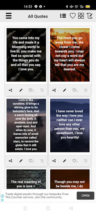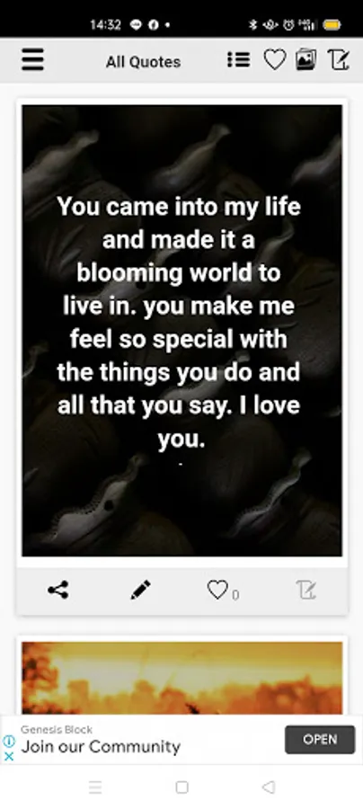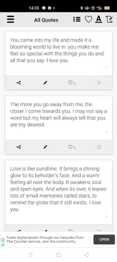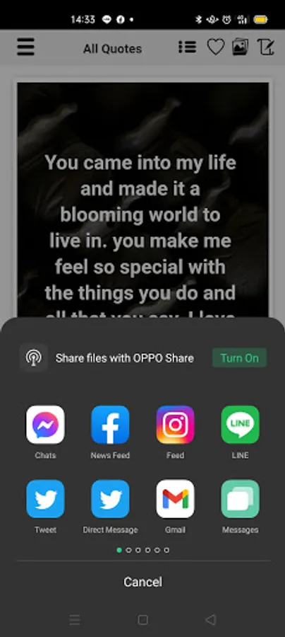 - You can switch between 2 views (image quote view and text quote view) easily.