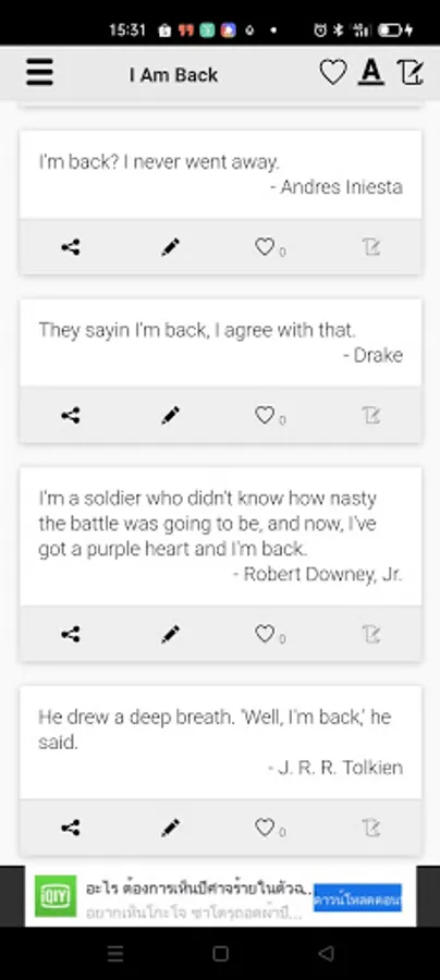 This is an App that stores many great I am back quotes. I will continue adding new quotes timely. There are many I am back quotes that you can learn and share to anyone.