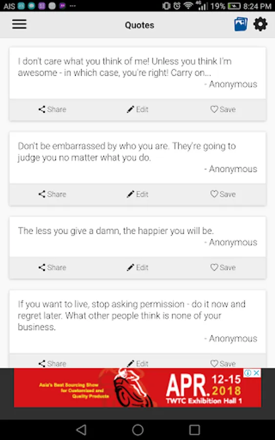 - You can edit your image quotes as you want (change font, background image, text size, etc.)