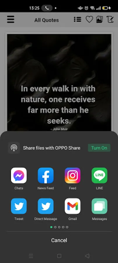 - You can switch between 2 views (image quote view and text quote view) easily.