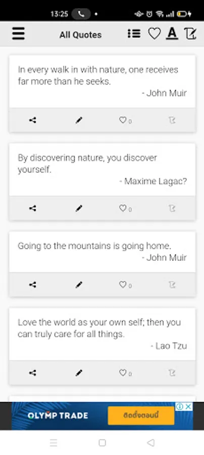 This is an App that stores many great I Love Nature Quotes. I will continue adding new quotes timely. There are many I Love Nature Quotes that you can share to anyone.