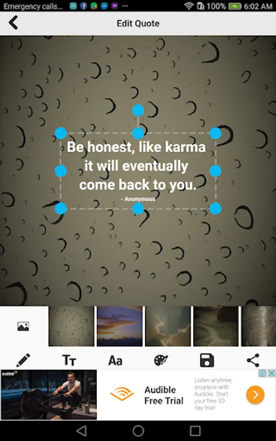 - You can switch between 3 views (image quotes view, grid view and text view) easily.