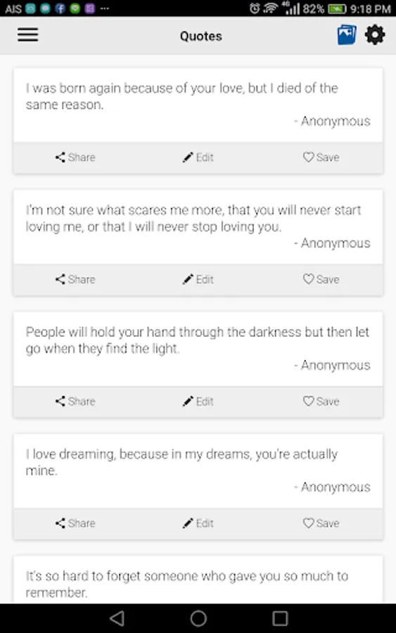 - You can switch between 2 views (image quote view and text quote view) easily.